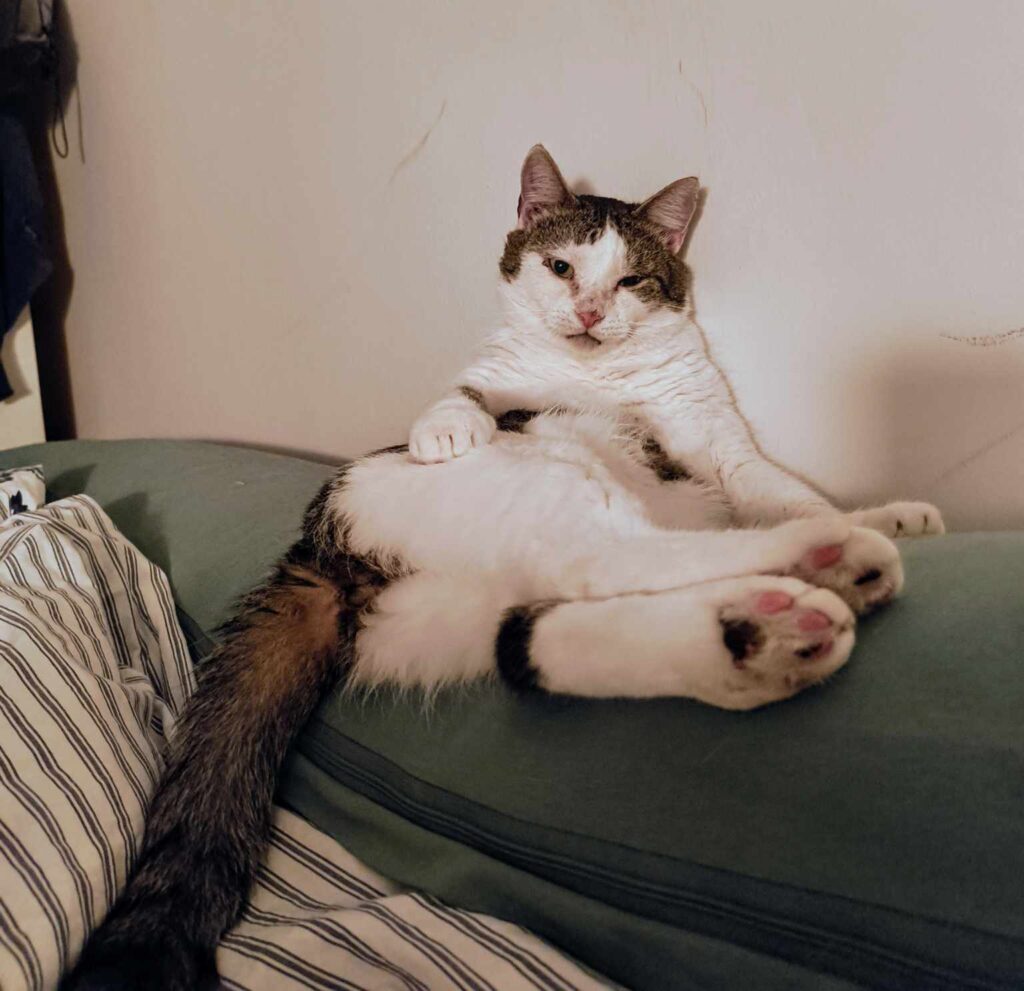 Zufrieden gingen Fritte und die nicht mehr ganz so dicke freundliche Frau in unterschiedliche Richtungen ab. Leo seufzte erleichtert, sprang elegant aufs Bett und rollte sich entspannt auf ihrem Kissen zusammen. „Herrlich, so ein Samstagmorgen!“